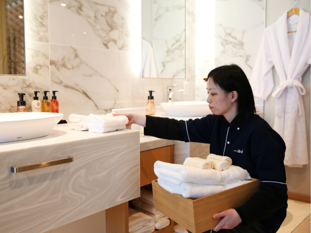 | 仕事内容 | お客様に快適に過ごしてもらえるよう、ホテルの清掃や客室管理を行うお仕事です。 ホテルを支える裏方のお仕事で、接客が苦手な方も活躍しています!9時~18時の日勤のお仕事のみでプライベートの予定も立てやすく安心です。 【具体的な業務内容】 ■客室清掃 ・ベットメイク ・ふとん敷き ・シーツ・まくらカバーの点検および手配 ■パブリック清掃 ・ロビーエントランスやコンベンションホールなどの清掃業務 ■大浴場> ・大浴場、VIP用浴場の清掃 ・タオル・シャンプー・ボディソープ等の備品管理 など |