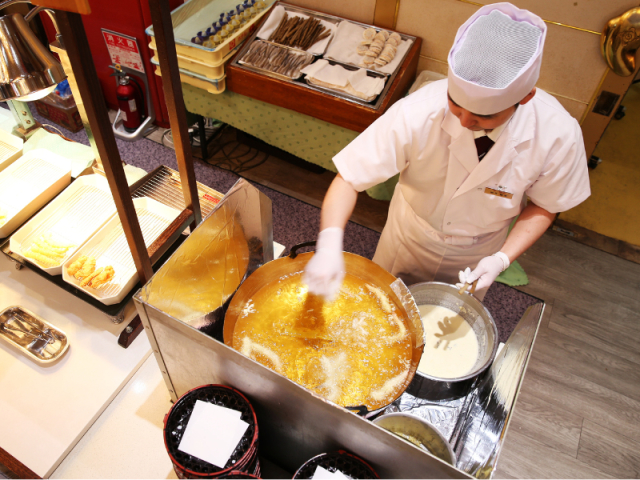 オープンキッチンで出来立てを味わうバイキングレストランはお客様からご好評です♪