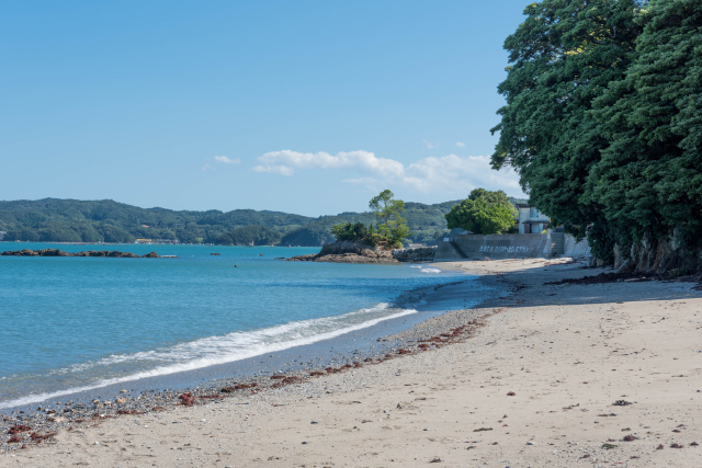 【周辺環境】当館から海側へ1分歩けば安楽島海岸。夏には海水浴場として賑わいます。