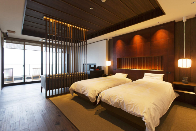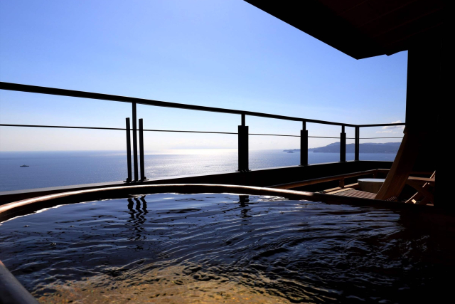 「山龢」は、熱海市網代、標高160m超の急勾配に位置し、眼下に広がる相模湾や熱海の奥座敷を満喫できる瀟洒(しょうしゃ)な旅館です。