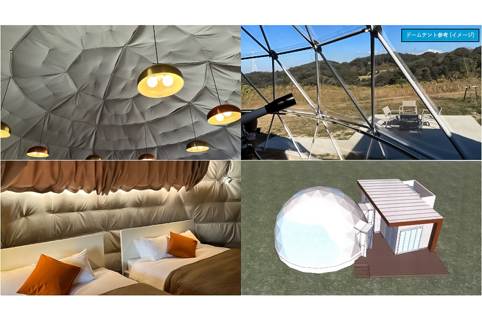 ♢最先端のキャビン型トレーラーハウスとドーム型テントの宿泊施設を用意中