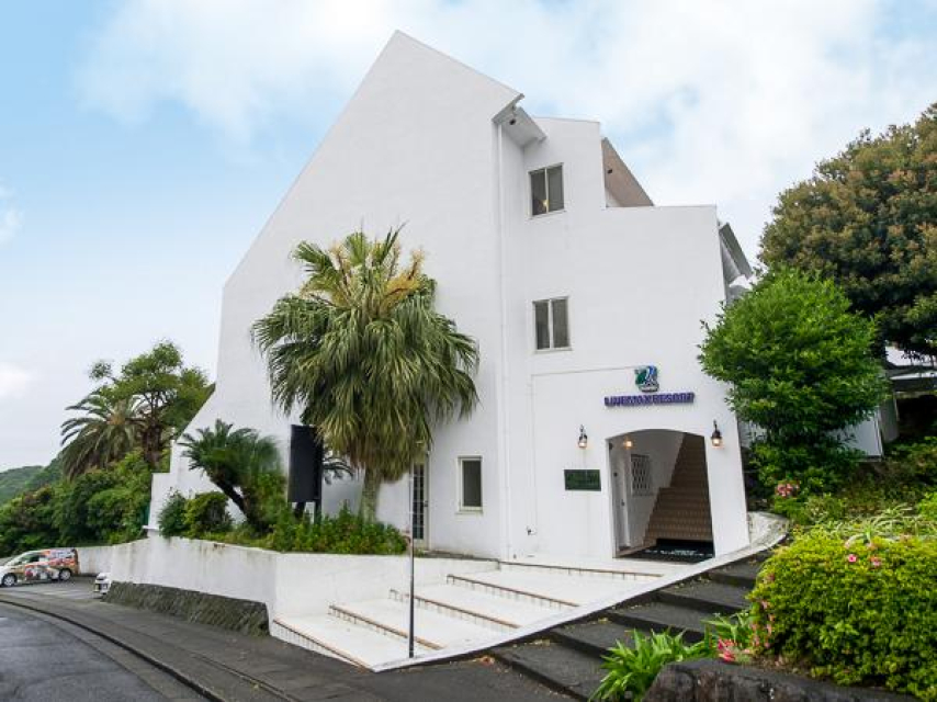 伊豆急下田駅から車で約10分。美しい碁石が浜を見下ろす高台にある南欧風ホテル。